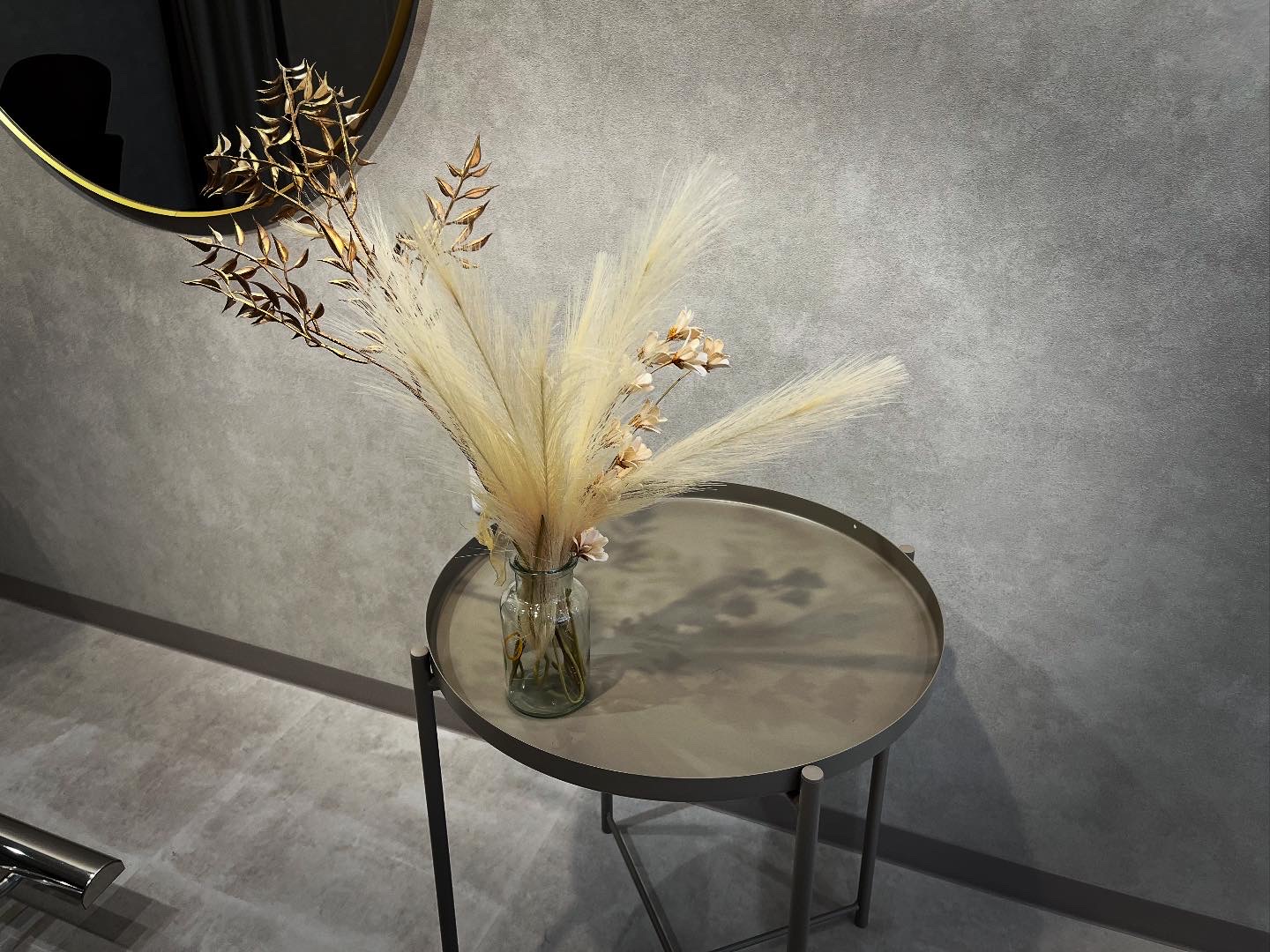 内装デザインがグレイッシュでシンプルに。丸いミラーが女性的な空気感も感じさせます。